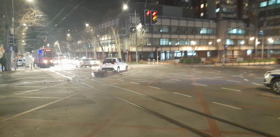 STRAVIČAN UDES U BEOGRADU! Od siline udara motor uništen do neprepoznatljivosti! (FOTO)