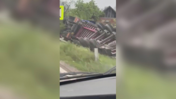 PREVRNUO SE KAMION, ZAVRŠIO U OBLIŽNJEM DVORIŠTU Teška saobraćajna nezgoda u selu Bresnica kod Čačka, vozač prebačen u bolnicu (VIDEO)