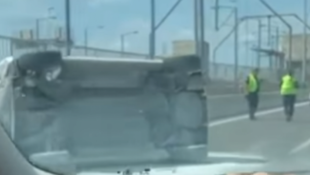 TEŽAK UDES NA MOSTU NA ADI Automobil se prevrnuo od siline udara (VIDEO)