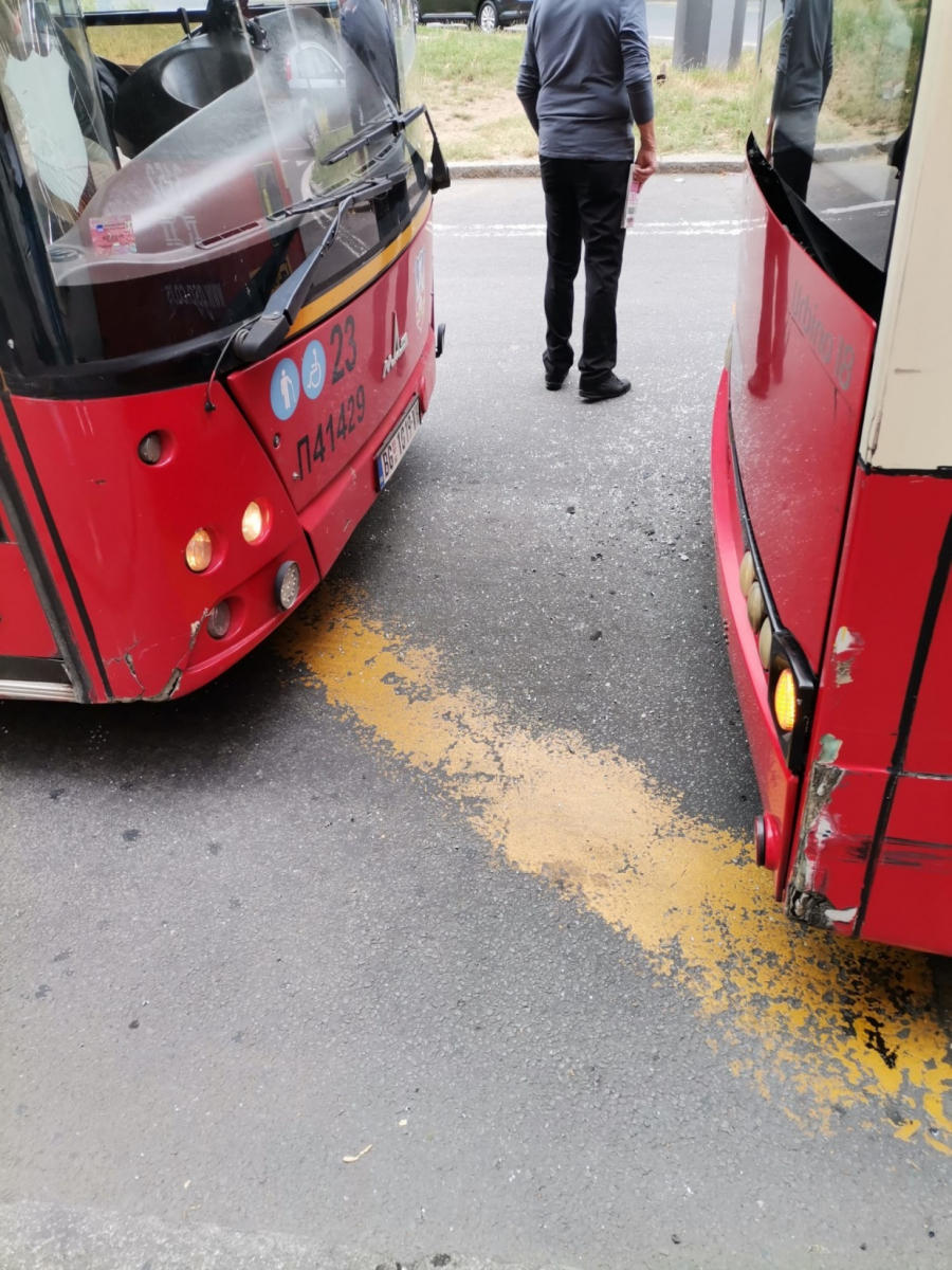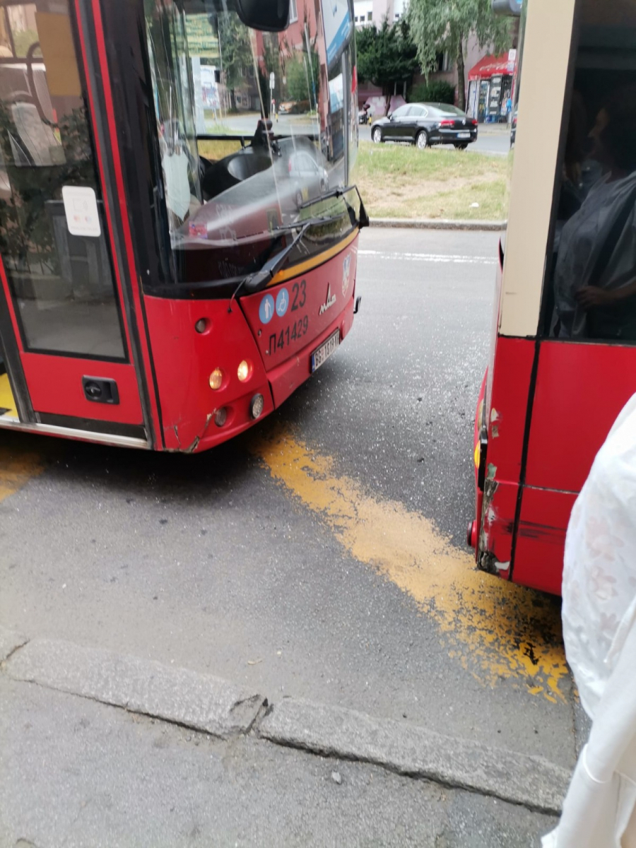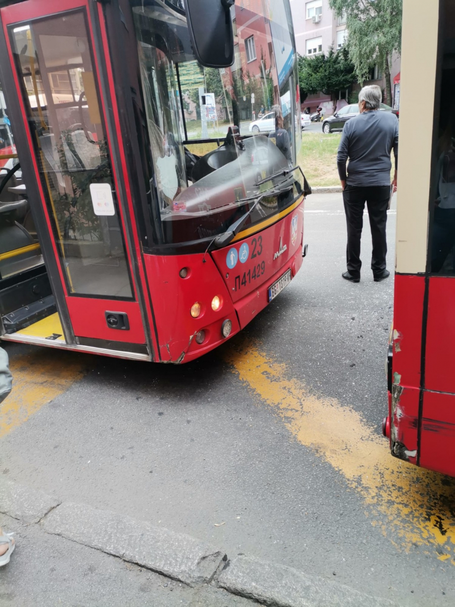 Tom prilikom su se sudarili i sada je okretnica potpuno blokirana zbog čega drugi autobusi ne mogu da prođu.
