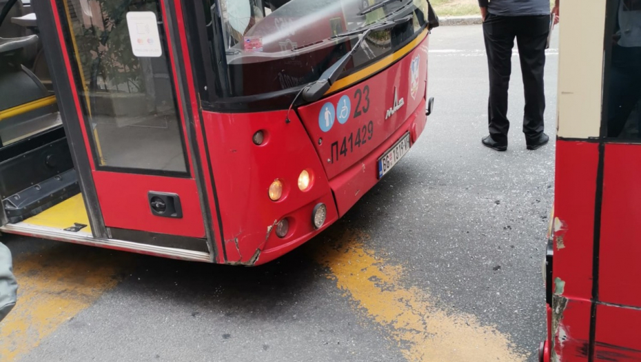 SUDAR DVA AUTOBUSA Okretnica na Karaburmi blokirana, sukobili se vozač i putnici (FOTO)