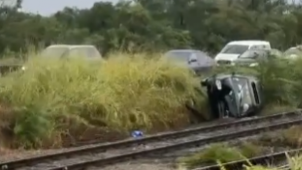 UŽAS! VOZAČ SLETEO SA PANČEVAČKOG MOSTA Automobil potpuno smrskan na pruzi (VIDEO)