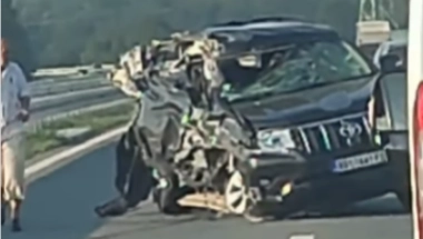 Kako se na snimku, može videti putničko vozilo je potpuno smrskano, a o jačini udesa svedoči i guma koja je odletela pedesetak metara od automobila.