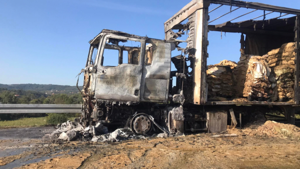 OVAKO SADA IZGLEDA KAMION KOJI SE ZAPALIO KOD UMČARA Zbog dima je obustavljen saobraćaj u oba smera (FOTO)