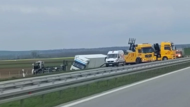 - Prevrnut kamion u kružnom toku na ulazu u Pećince – stoji u objašnjenju snimka.