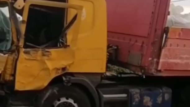 Konstrukcija je ostala nakrivljena, a deo metala je završio u šoferšajbni kamiona, čiji je levi deo oštećen.