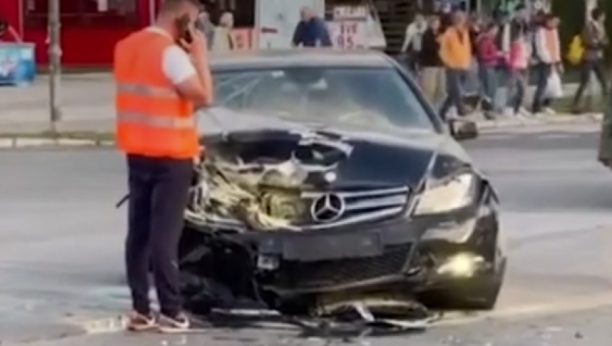 JEZIV PRIZOR U NOVOM SADU Mercedes potupno "zgužvan", drugo vozilo "oduvano" od siline udara (VIDEO)