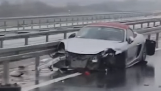 Kako se vidi na snimku sa društvenih mreža jedan sportski automobil zakucao se u bankinu pod nepoznatim uslovima, a vozilo je prilično uništeno.