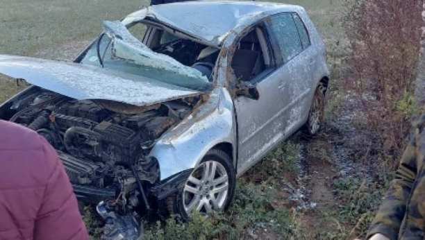 AUTOMOBIL SMRSKAN, STANJE VOZAČA NIJE POZNATO Golfom sleteo sa puta, meštani izvlačili prevrnuto vozilo