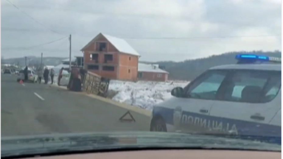 POVREĐENA JEDNA OSOBA Sudarila se dva vozila, automobil sleteo sa puta i prevrnuo se (VIDEO)