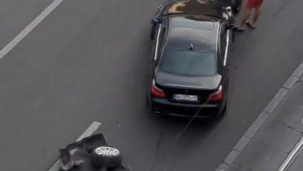 HAOS U RUZVELTOVOJ ULICI! Od siline udarca odletela i guma sa BMW-a (VIDEO)
