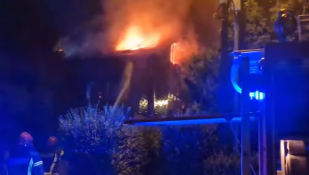 VATRA GUTA KUĆU U VIŠNJIČKOJ BANJI Dramatična scena, vatrogasci se bore sa buktinjom (VIDEO)