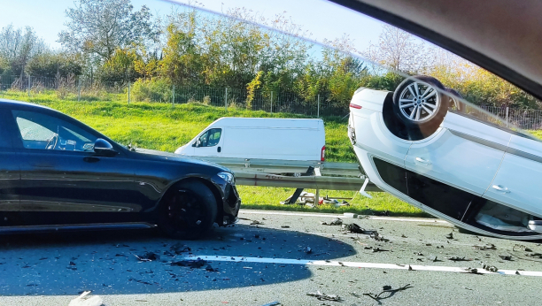Jedan automobil se prevrnuo na krov, a drugom je slupan zadnji deo.