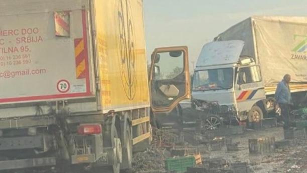 U udesu su učestvovali kamion i autobus, a zasad nije poznato koliko automobila. Dva automobila stoje na mestu udesa.