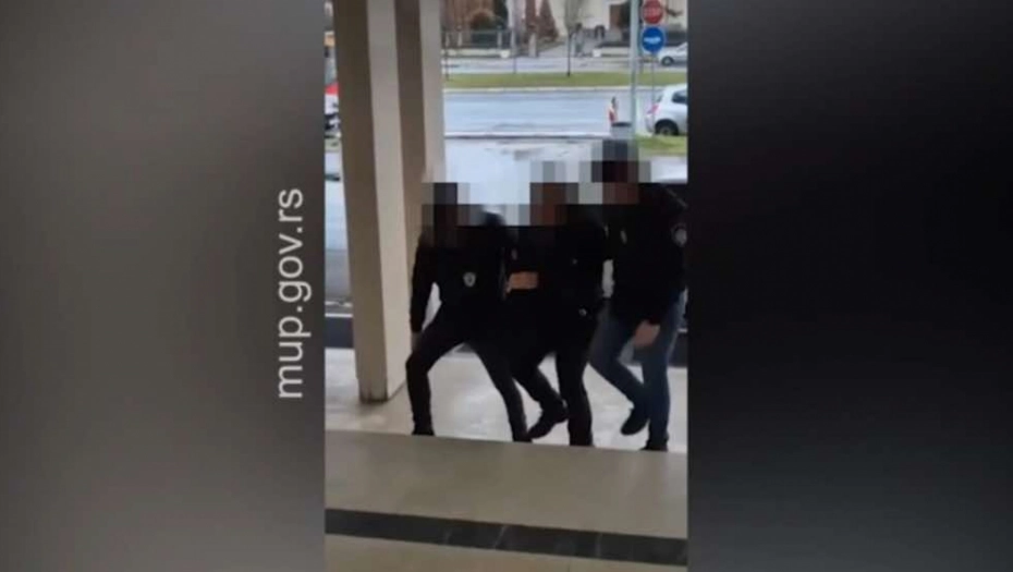 Na snimku koji je objavio MUP vidi se kako je Stanković doveden sa lisicama na rukama u policijsku stanicu.
