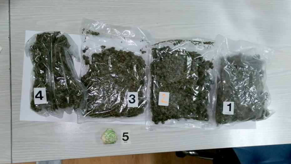 Pripadnici Ministarstva unutrašnjih poslova, Uprave granične policije, u saradnji sa Upravom carine zaplenili su oko kilogram marihuane i manju količinu amfetamina i uhapsili bugarskog državljanina I. D. (26) i državljanina Severne Makedonije M. S. (30) zbog postojanja osnova sumnje da su učinili krivično delo neovlašćeno držanje opojnih droga.