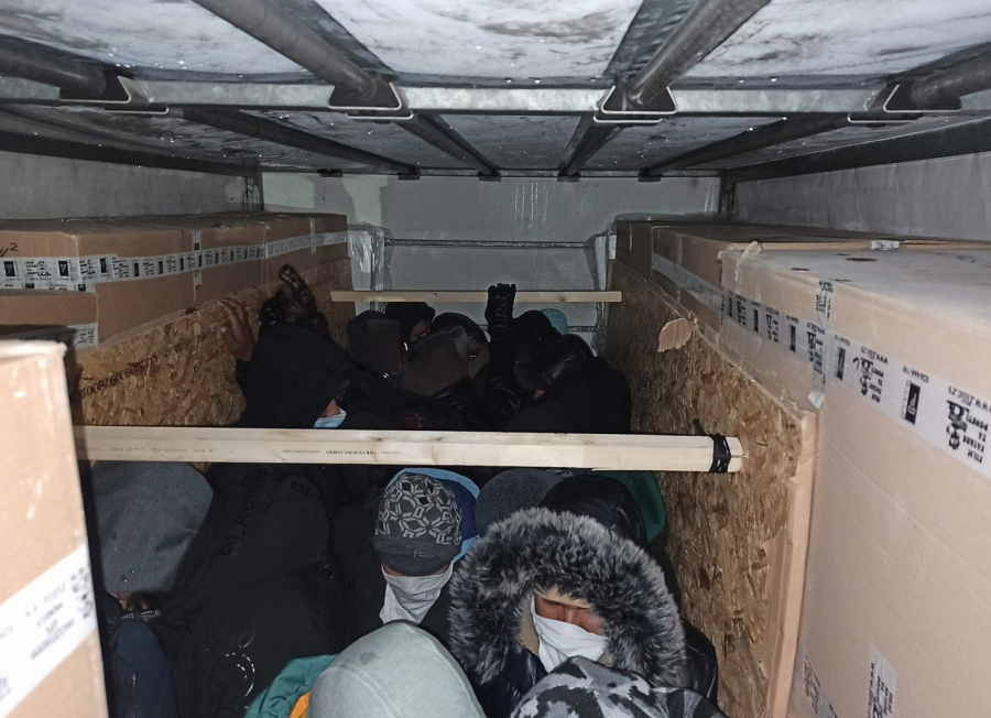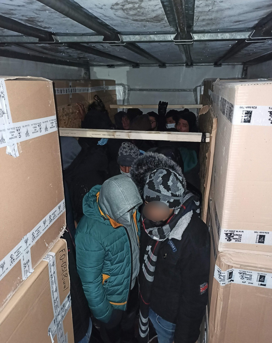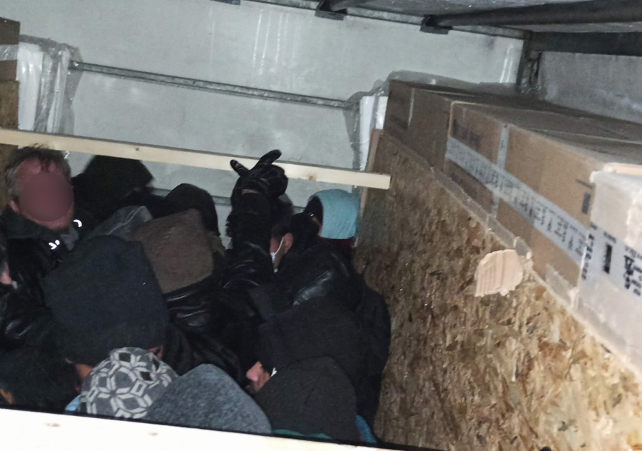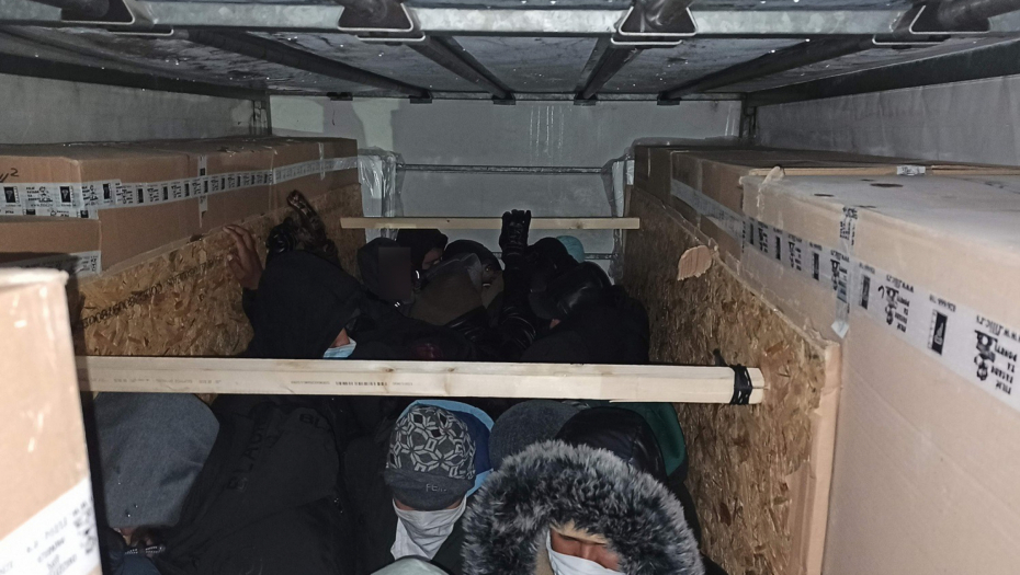 Otvorivši tovarni deo kamiona, među prijavljenim kutijama punim robe, primetili su šupljinu pregrađenu lesonitom, u kojoj su stajale čak 24 osobe.