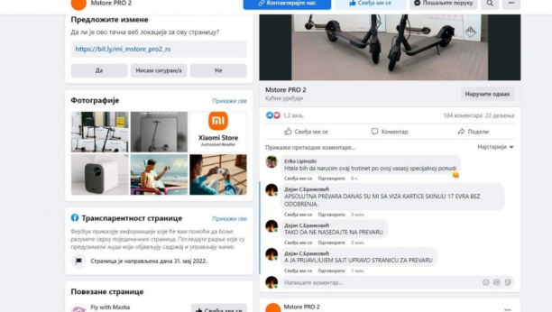 - Mahom nas zovu kupci koji su želeli da se prijave za kupovinu trotineta po toj specijalnoj ceni. A njih troje je, nažalost, već ostavilo svoje podatke na toj lažnoj Fejsbuk stranici i koliko smo informisani, morali su da idu u banku i traže da stopiraju prebacivanje novca sa svog na taj neki račun - rekao je jedan od radnika „Mi Store Srbija“.