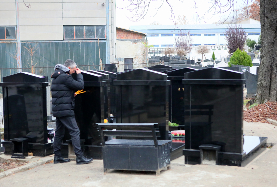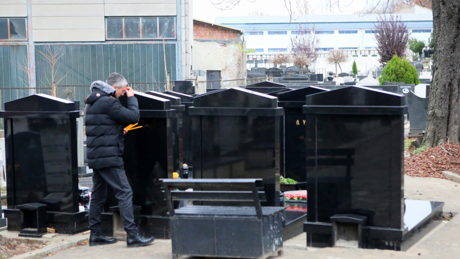 On je na Novom groblju u Beogradu zapalio sveću za pokoj duše Nikoli, a na grobu su bile položene i dve crvene ruže.