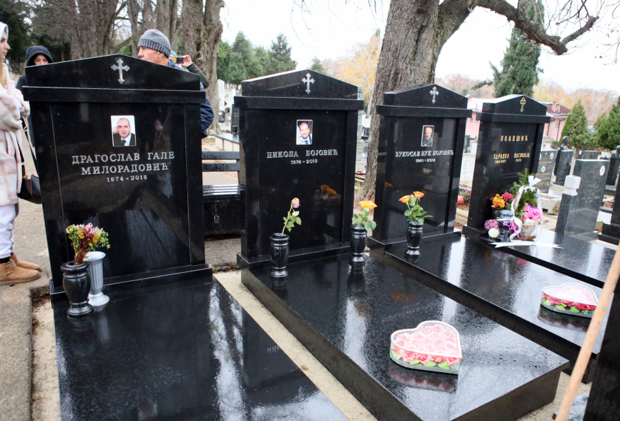 Tokom jučerašnjeg dana brojne novinarske ekipe iščekivale su Luku Bojovića na Novom groblju, gde počivaju njegov otac Vuk, ubijeni brat Nikola, ali i kum Dragoslav Gale Miloradović i prijatelj Rade Rakonjac.