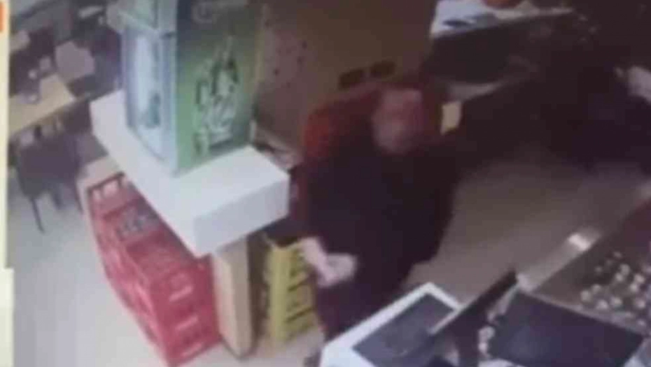 Na snimku se vidi kako dete u stopu prati lopova i zaviruje u prostor iza šanka.