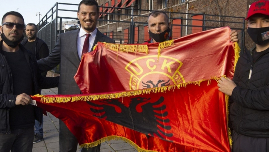 Ovo je Tačijev sin! Danas je došao ispred suda u Hagu i mahao zastavom koljača iz OVK! (FOTO)