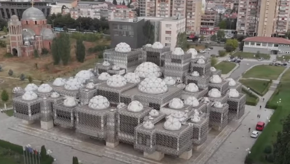 Иначе, градска библиотека у Приштини, свечано је отворена 1982.године. Изграђен је новцем из Савезне Републике Србије. И није настао после 1999.год, како је преставио овај страни дебил од репортера. Ова грађевина је ремек дело аутора, са необичном архиктектуром, не зна шта је заправо мислио да је ружно, да ли период од 1999,све што је нелегално изграђено.
