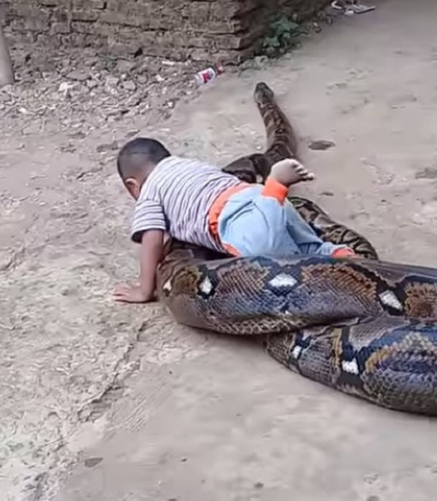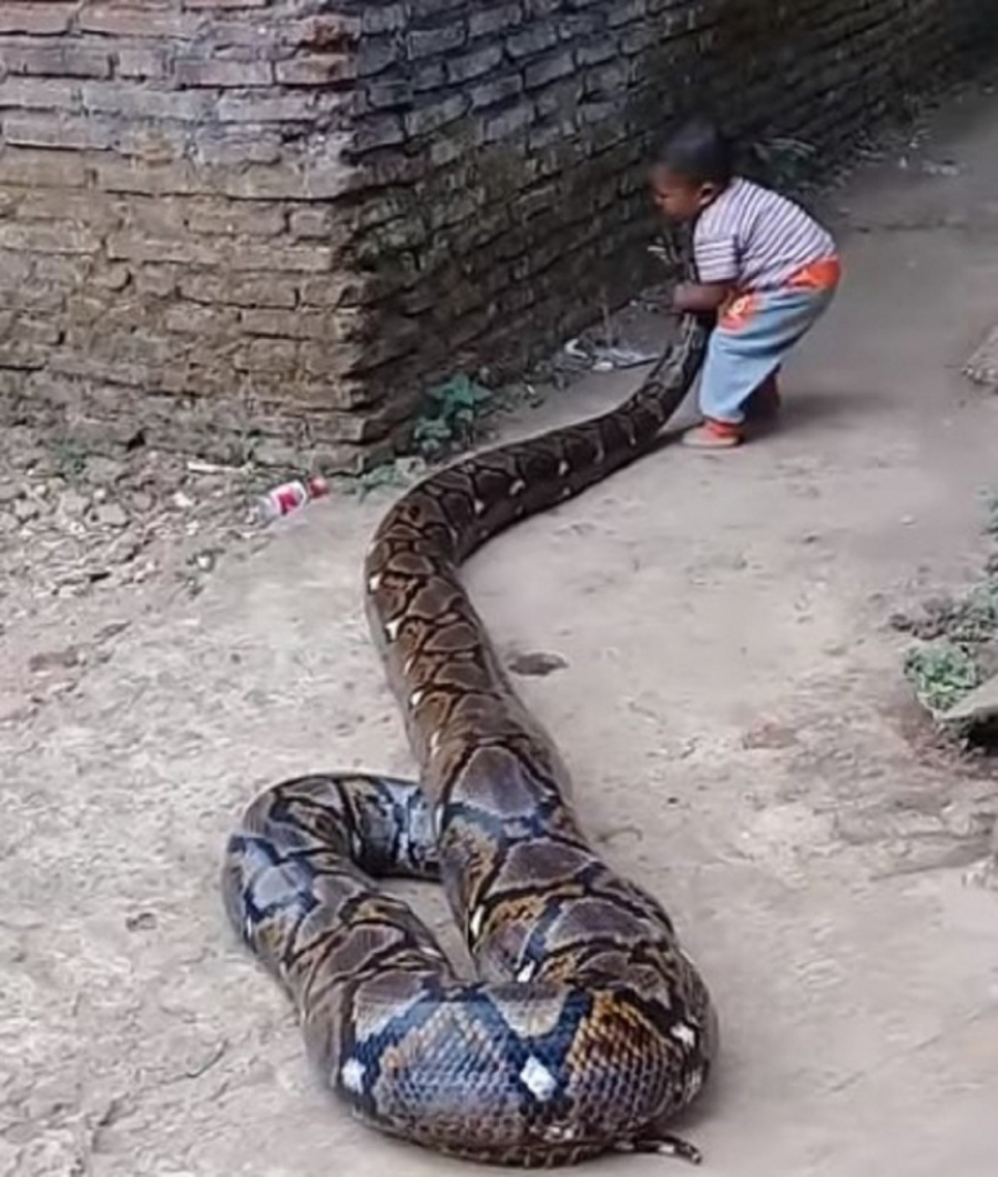 Mališan iz Indonezije spazio je u dvorištu kuće džinovskog pitona. Neznajući da ogromna zmija može da bude i te kako opasna, kada su nejakom stvorenju obmota oko vrata ili struka, dečak je našao pravu zanimaciju.