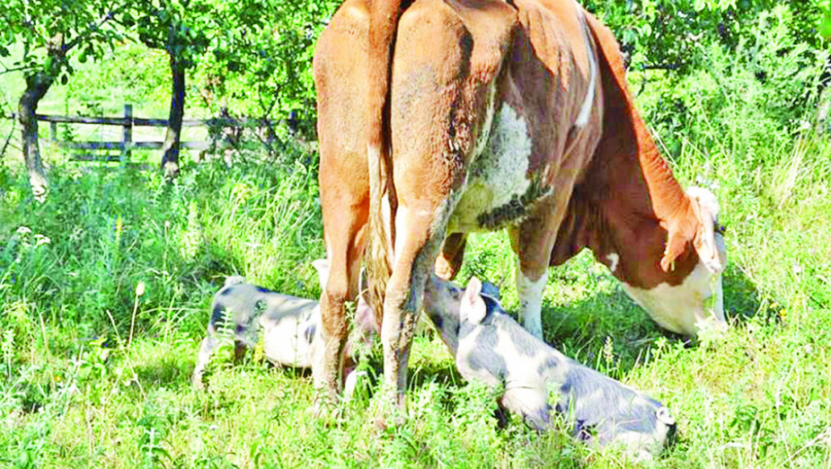 Dva praseta sisaju kravu, Foto: privatna arhiva