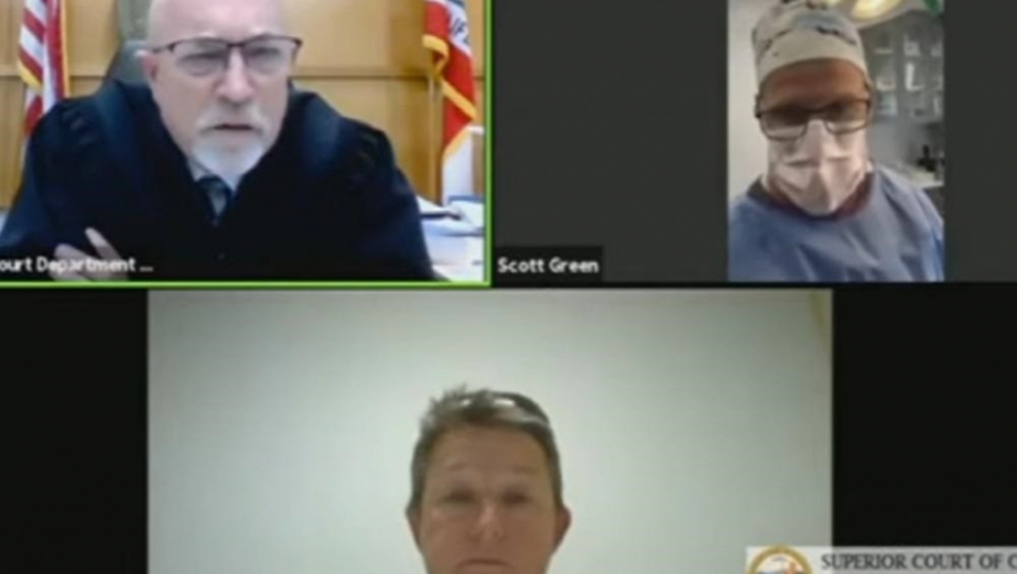 Dr Skot Green je trebalo da se uključi u onlajn saslušanje putem Zuma, koje se ticalo saobraćajnog prekršaja, međutim, jasno se videlo da je u hirurškoj opremi i u operacionoj sali.