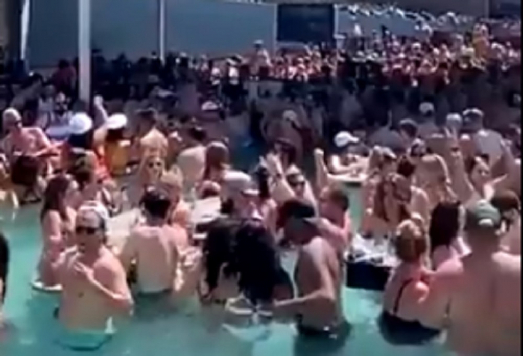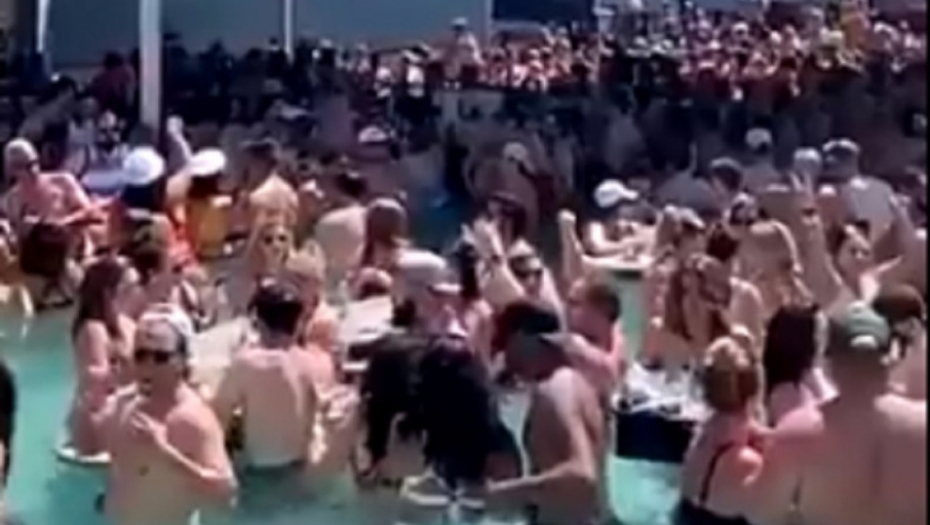 Jasno se vidi ogroman broj ljudi koji opušteno đuskaju u bazenu ne obazirajući se na upozorenja koje američke vlasti nedeljima šalju svojim građanima.