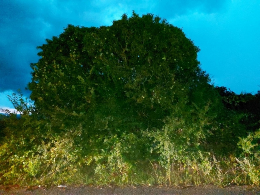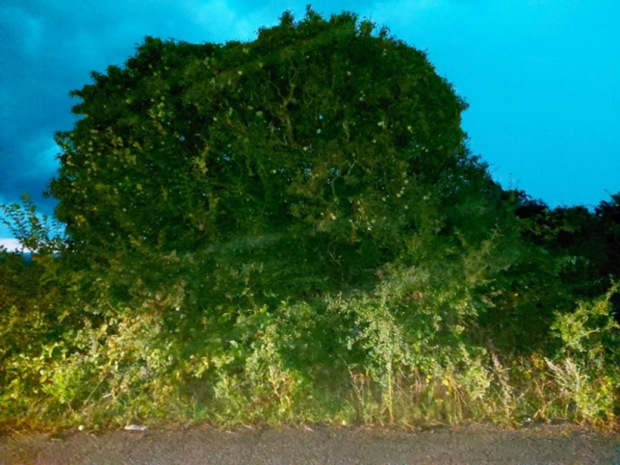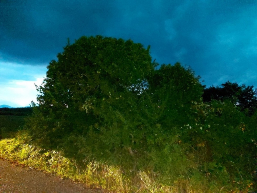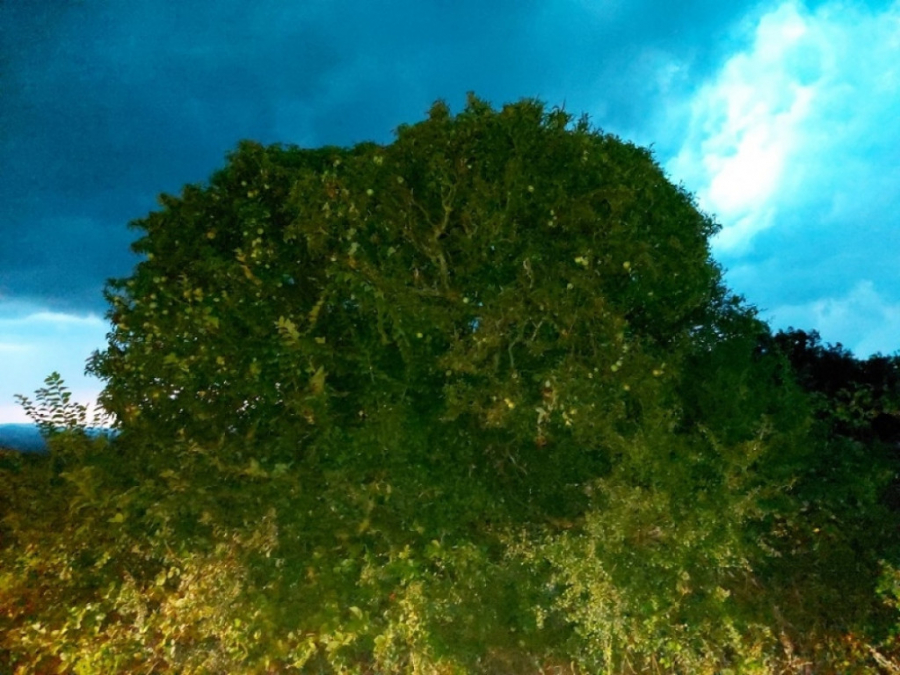 Malo je reći da je drvo zla neobičnog oblika, pre bi se moglo reći čudnog, guste i teške krošnje pod teretom ploda se protežu do zemlje. Uverili smo da je drvo izuzetno energizovano, a zastali smo tu u povratku za Beograd, tek što je počela da pada kiša koja je noćas maltene potopila taj kraj. I zbilja je sve izgledalo apokaliptično, činilo se da tu seva više nego bilo gde u Šumadiji.