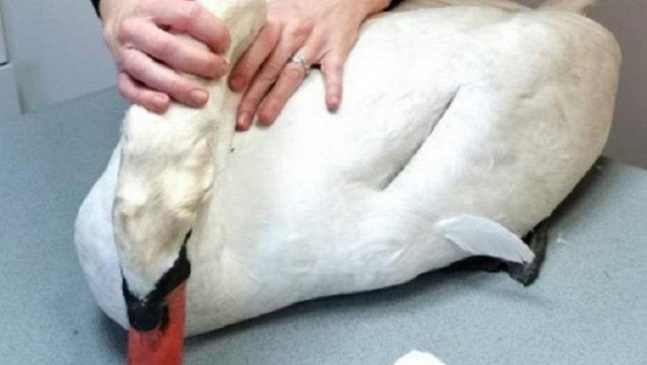 Labud pronađen sa čarapom preko glave, spašen pre nego što je umro od gladi