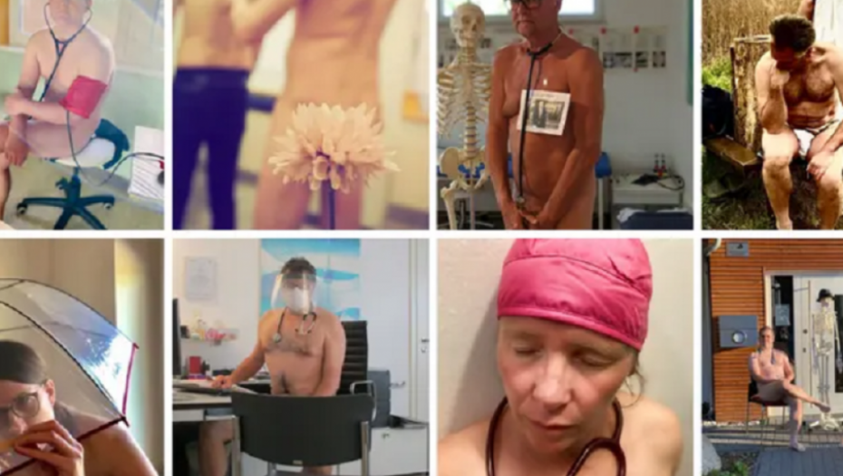 Lekari su pozirali u svojim ordinacijama, krijući intimne delove tela iza papira, toalet papira i blokova za recepte.