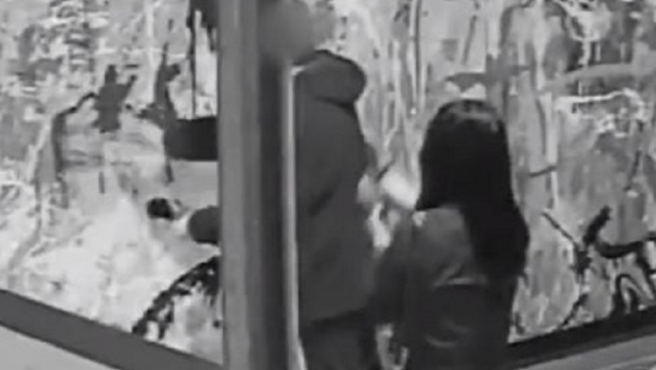 Juče 4. aprila, kamere CCTV u umetničkoj galeriji u seulskom tržnom centru Lotte Vorld uhvatile su par kako prskaju i trljaju boju po umetničkom delu.
