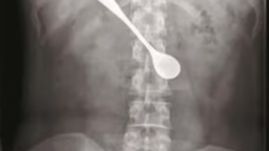 U oktobru prošle godine doktori su izvukli kašičicu iz tela pacijenta starog 26. godina. On je kašičicu progutao dok se kladio u pijanom stanju.