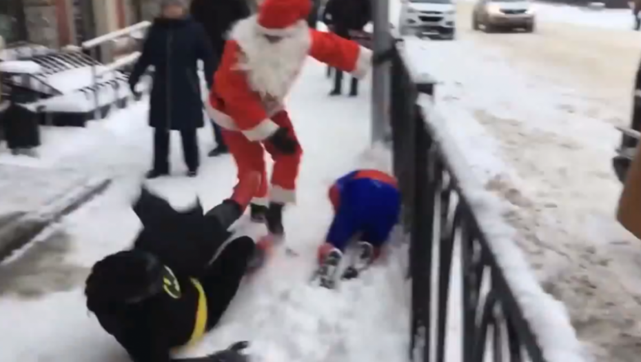 Super heroji se pokačili na ulici, a onda je uleteo DEDA MRAZ! Snimak od kojeg nećete moći da prestanete da se smejete! (VIDEO)