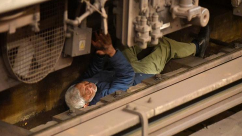 Prvi ispitanici su požurili na mesto incidenta posle nekoliko poziva upućenih policiji i pronašli beskućnika zaglavljenog između šina i voza.