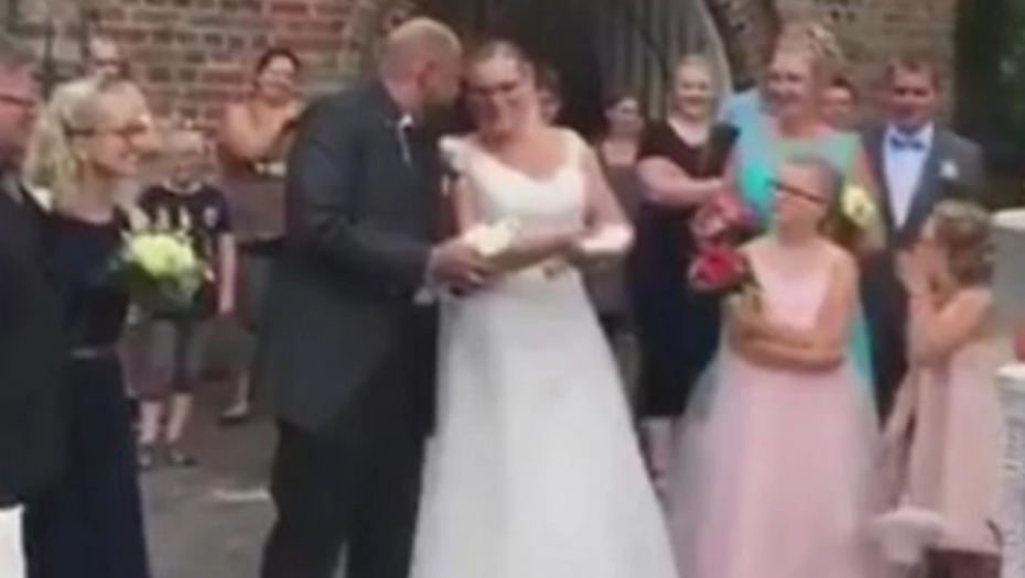 Tviterom se, naime, proširio video mladenaca koji nakon samog obreda venčanja u rukama drže dve bele golubice. Ptice su želeli da puste na slobodu, to im baš nije pošlo za rukom. Dok je golubica koju je mladoženja držao poletela u vazduh, ona koja je bila u rukama mlada samo je pala na tlo.