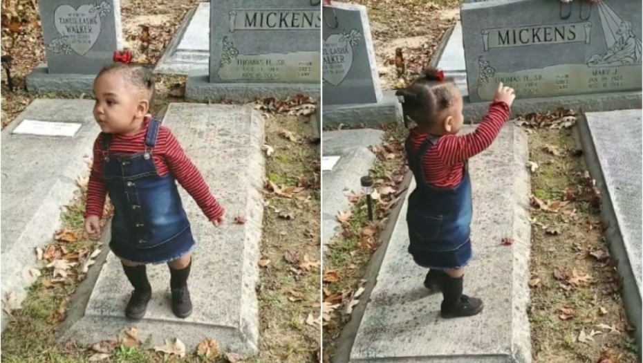 Kejona Voker je sa ćerkom Lajonom posetila grob svoje sestre. Dok su bile na groblju, majka je snimila ćerku kako razgovara sa nekim, iako sem njih dve niko nije bio prisutan. Ova mala devojčica gleda u prazan prostor iznad groba i izgleda kao da ostvaruje direktan kontakt očima sa nekom osobom. Ona maše i pozdravlja se.
