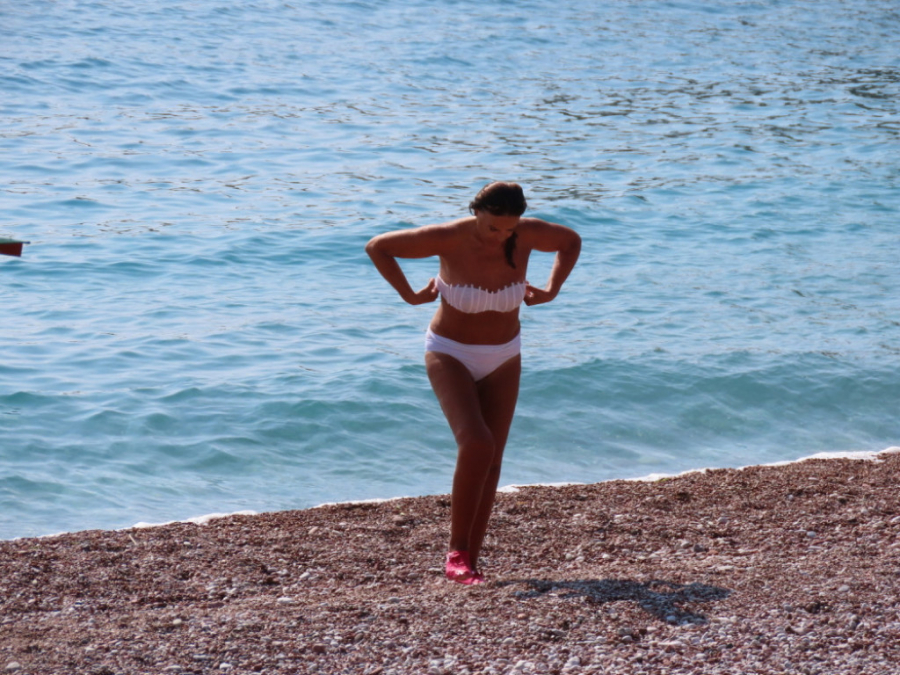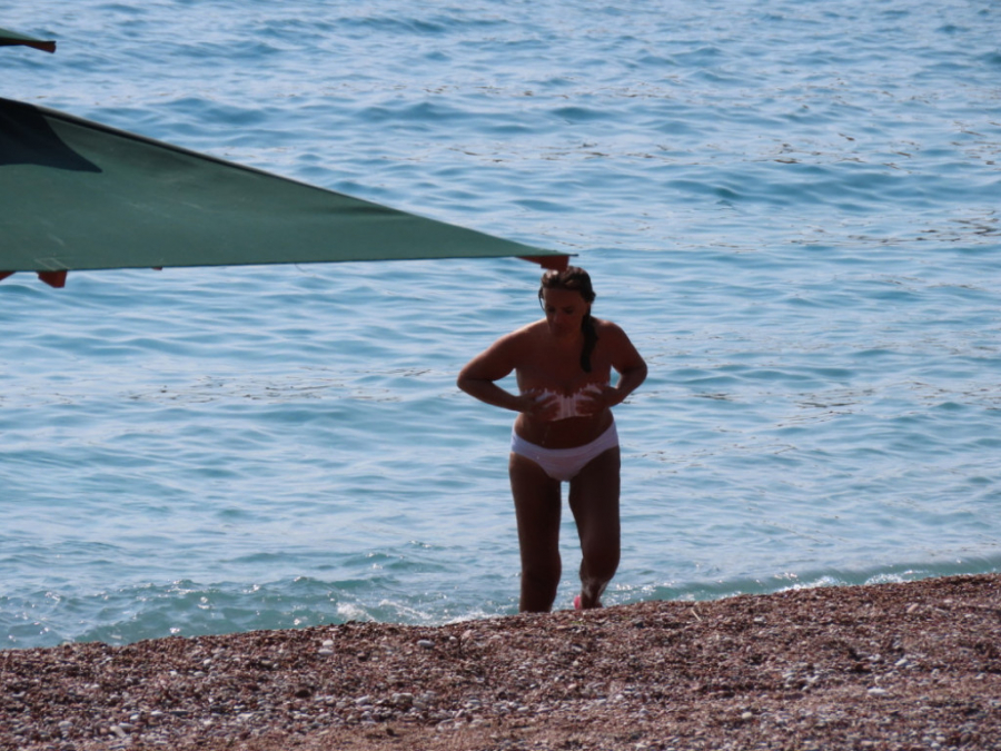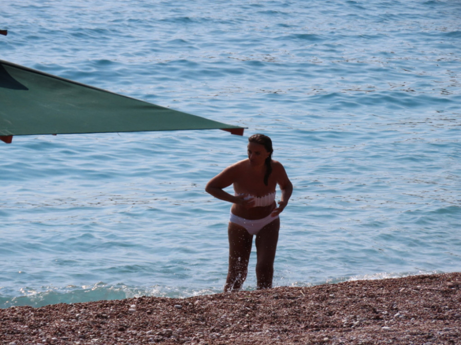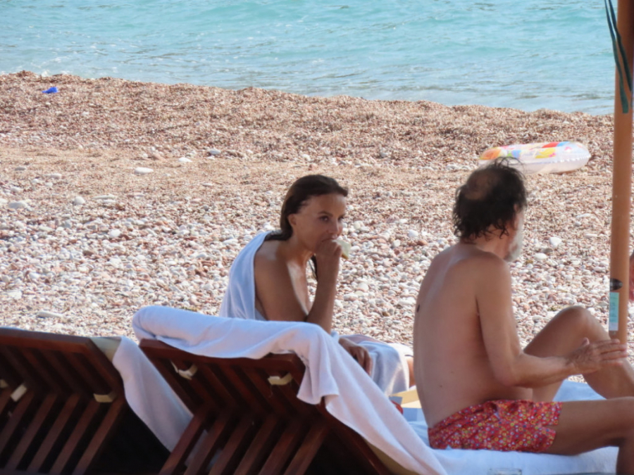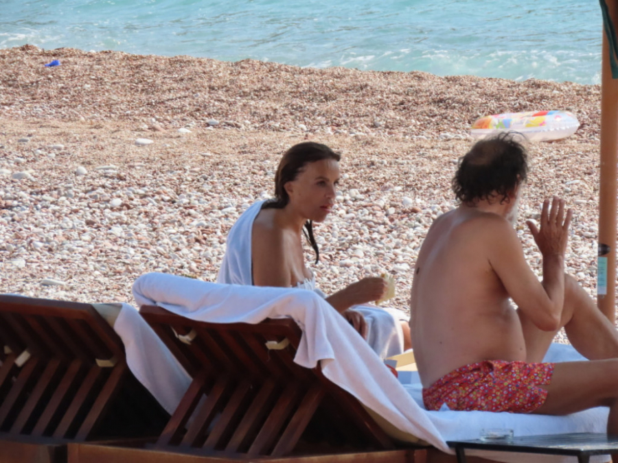 Par se odmara na Kraljevoj plaži, gde iznajmljivanje ležaljke po danu košta 75 evra, bez hrane i pića.