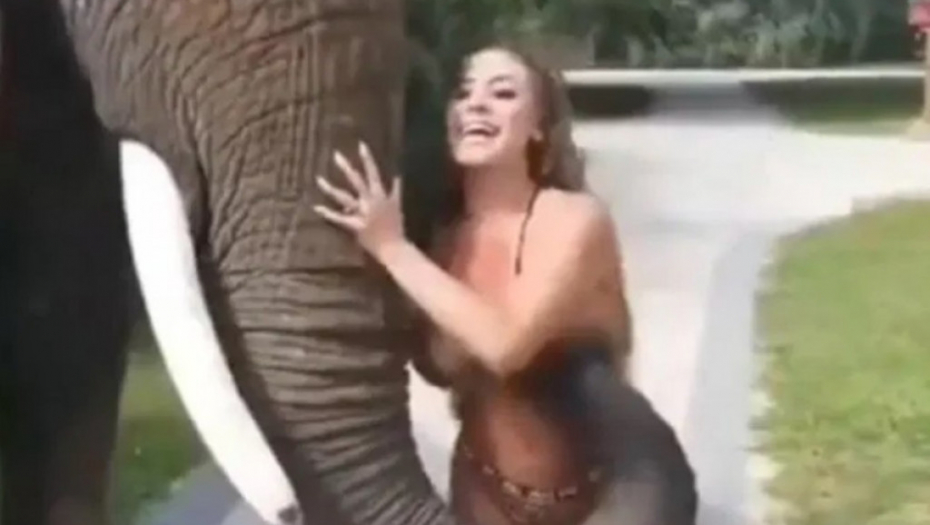 Nije slon budala, ugledao prsatu devojku i odmah je reagovao svojom surlom! (VIDEO)