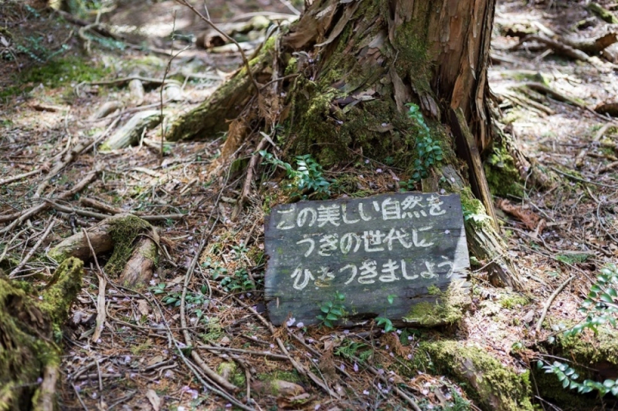 Mnogi ljudi dolaze u šumu Aokigahara da osete njenu zelenu lepotu i traže misterije koji šuma krije u njoj. Ali postoje neki ljudi, koji ulaze u šumu s namerom da se izgube u njenom krilu da nikada ne izađu. Natpisi na ulazima u šumu podsećaju posetioce da su njihovi životi dragoceni, da misle na svoje porodice. Na dnu znakova nalazi se broj telefona ako se izgubite. Tako je ova šuma neslavno zaslužila ime „Šuma samoubica“.