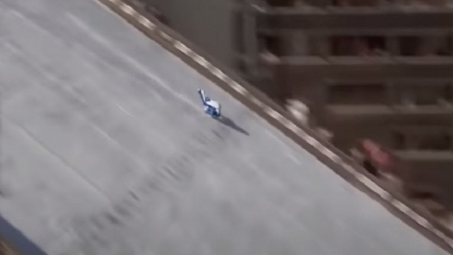 Norvežanin brzinom preko 100 kilometara na sat. podigao se u vazduh, ali tik pred vratima iznenada je izgubio ravnotežu. S velikom snagom, leteći sa velike visine,pao je na pod i prevrtao se do kraja staze.