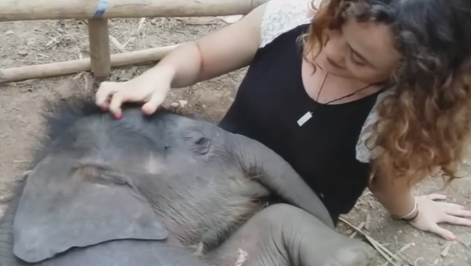 Mladučne slona potražilo je utehu u krilu jedne devojke u jednom tajlandskom nacionalnom parku. Koliko se opustilo najbolje svedoči podatak da je slonče zaspalo dok mu je devojka pevala i mazila ga po glavi.