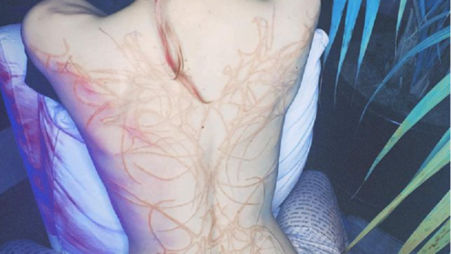 Muzičarka se na svom Instagramu pohvalila novom velikom tetovažom na čitavim leđima. Prošle nedelje je podelila fotografiju na kojoj je prikazana složena mreža zamršenih linija tetoviranih belim mastilom. Nazvala ih je "prelepim vanzemaljskim ožiljcima".