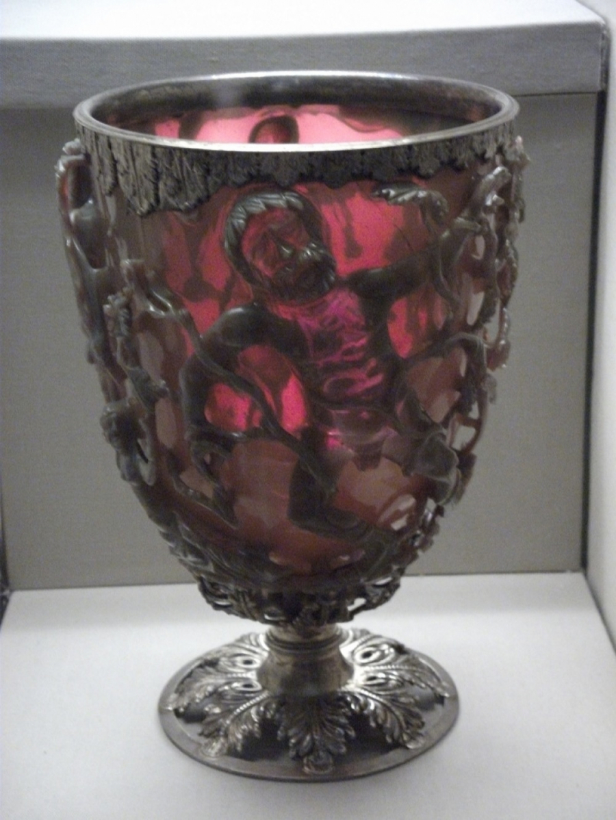 Roman Likurgus Kup je rimski kalež od žada zelene 1.600 godina. Kada u njega stavite izvor svetlosti, on magično menja boju. Izgleda žadnozeleno kada je osvetljeno sa prednje strane, a krvavocrveno kada je osvetljeno pozadi ili iznutra.