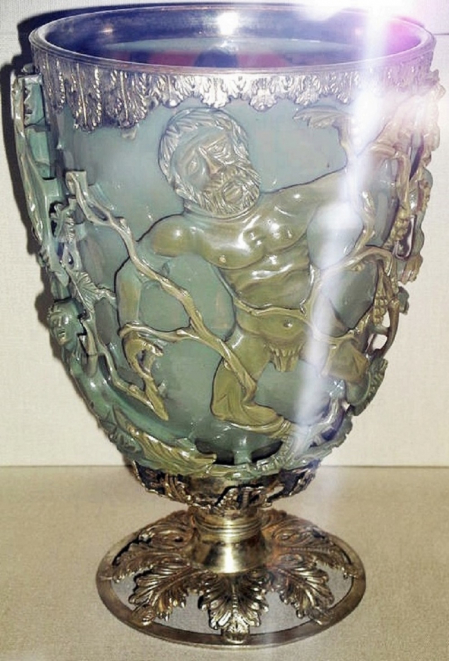Originalna čaša Likurga iz četvrtog veka nove ere, verovatno izvađena samo za posebne prilike, prikazuje kralja Likurga zarobljenog u klupku vinove loze, verovatno zbog zlih dela koja su počinjena protiv Dionisa - grčkog boga vina. Ako pronalazači uspeju da razviju novi alat za otkrivanje iz ove drevne tehnologije, na red će doći Likurg.