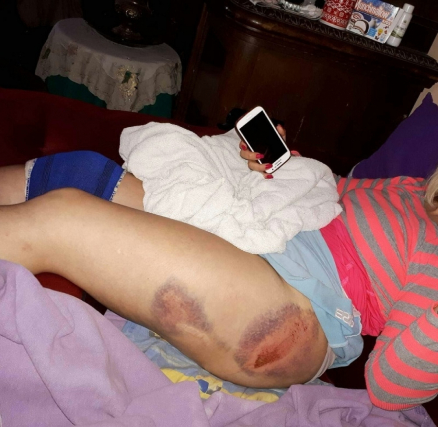 Ističe da je osetila strašnu težinu i neopisivi bol, kolena su joj skroz ispala, a noge isekla krzava ivica kamena koja se stvorila od oštećenja, odnosno pukotine usled odvajanja od postolja. Jedina olakšavajuća okolnost je, priča ona, što je bila blizu spomenika, pa ploča padajući na nju nije mogao da postigne veliku brzinu.