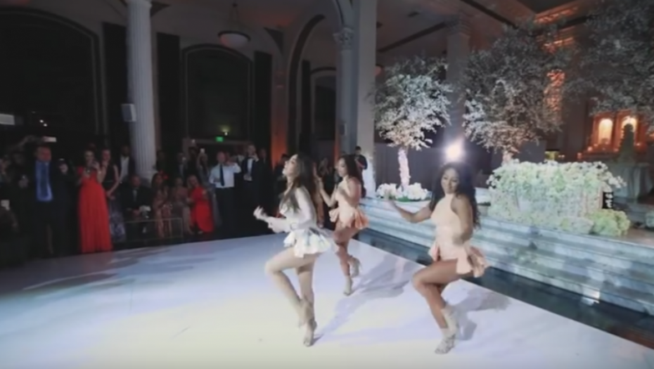 Ona je posela mladoženju na stolicu i oskudno obučena izašla na podijum zajedno sa još nekoliko plesačica, pa otpevala nekoliko pesama Bijonse Nouls.